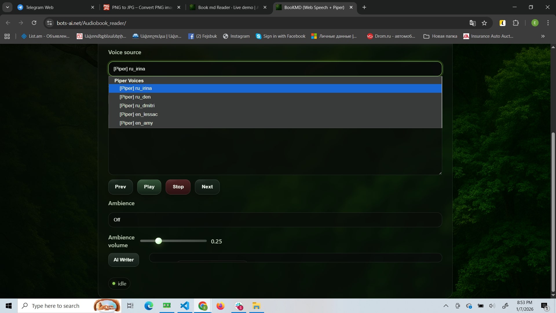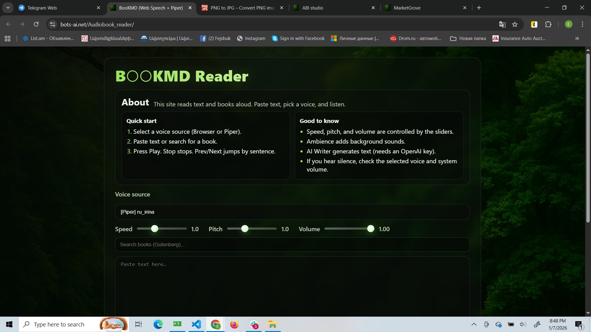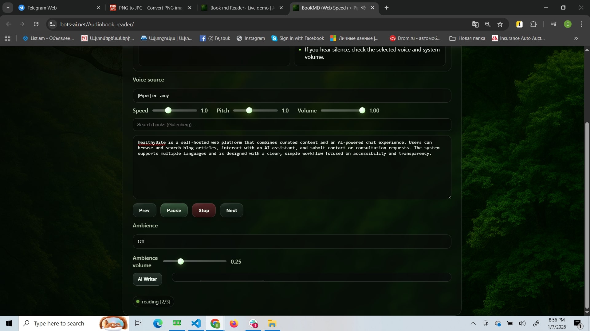 Open page โ reader UI loads (voice, editor, controls).